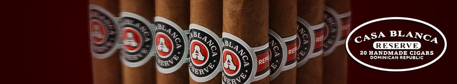 Casa Blanca, one our oldest and most trusted brands here at Santa Clara, has remained a popular choice among shoppers that enjoy smooth mellow to medium bodied smokes with an affordable price. Casa Blanca Reserve cigars brings a long awaited fuller bodied blend to the iconic Casa Blanca brand portfolio. The Reserve blend still uses the same Mexican binder and aged long filler tobacco from the Dominican Republic, this time with a more robust Ecuadorian leaf replacing the Connecticut wrapper found on the original blend . Medium bodied cigar fans will enjoy a smoke with complex flavors of coffee, cedar, leather, and spice not found on its mellower counterparts, yet it will be Just as smooth and satisfying as ever. Casa Blanca Reserve cigars are available right here at Santa Clara Wholesale Cigars in affordable 20-count bundles that are certain to fly off your shelves in record breaking, highly profitable numbers.