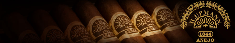 H. Upmann 1844 Anejo cigars, sold here at Santa Clara for the best wholesale cigar prices on the web, are hot new smokes from Altadis U.S.A., that come with plenty of extra aging. The cigars feature a superb blend of Honduran, Dominican and Nicaraguan fillers, layered inside a tasty Broadleaf binder and a dark oily, double-fermented Ecuadorian Habano wrapper. The word “Anejo” is Spanish for “old” or “mature,” and what distinguishes this three vitola line from all other H.Upmann cigars, is the fact that all of the tobaccos used to create this special blend have been aged for a minimum of 5-years. Medium to full bodied, H. Upmann 1844 Anejo delivers bold complex flavors of earth, dark roast coffee, cinnamon, and leather, backed by a rich tobacco sweetness on the finish, that’s certain to delight shoppers looking for a rich tasting Cuban-style cigar.