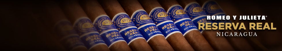 Romeo y Julieta Reserva Real Nicaragua, sold here at Santa Clara for highly competitive wholesale cigars prices, is a line of premium cigars that’s a must-have for every cigar shop. With a well-deserved 91-rating from Cigar Aficionado, Romeo y Julieta Reserva Real Nicaragua cigars stand out as one of the most popular offerings in the entire brand portfolio. The cigars are collaboration between Rafael Nodal of Aging Room fame, and AJ Fernandez, one of the most heralded cigarmakers in the premium cigar industry today. Billed as a smoother, creamier version of the original Romeo y Julieta 1875 series, this award-winning Nicaraguan puro blend is crafted from only the finest aged Cuban seed tobaccos grown on the Fernandez farms throughout the country. The cigars are covered by an oily and dark maduro wrapper that adds a spicy sweetness to its rich, complex flavors of espresso, hazelnut, anise , cinnamon, and black pepper. Stock up on the full line Reserva Real Nicaragua cigars right here at Santa Clara, and watch your customers spark another love affair with the legendary Romeo y Julieta brand!